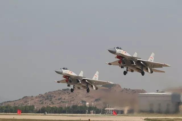 △轰鸣声中,两架“飞鲨”腾空而起,飞赴演训空域。