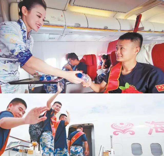 △上图:立功老兵坐进头等舱。下图:退伍老兵登机。肖炬鹏摄 方汉制图
