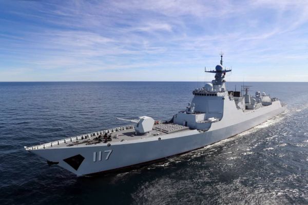 伊朗海军官网发布的图片显示,中国导弹驱逐舰西宁舰12月27日抵达伊朗南部的恰巴哈尔港,准备参加中俄伊海上联合演习。(欧洲新闻图片社)