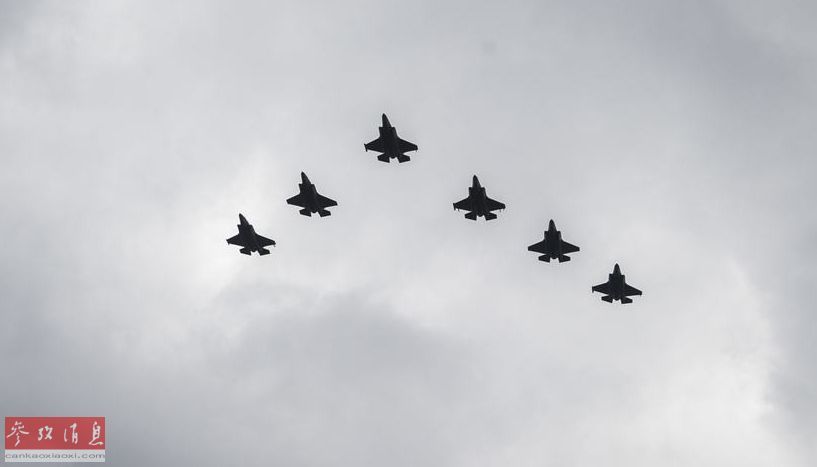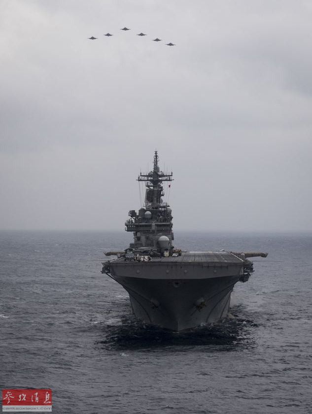美陆战队6架F-35B低空编队飞越“黄蜂”号两栖攻击舰。