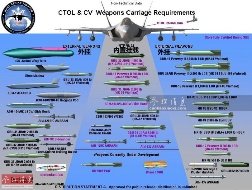 图为F-35A(空军型)地面武器展示资料图。