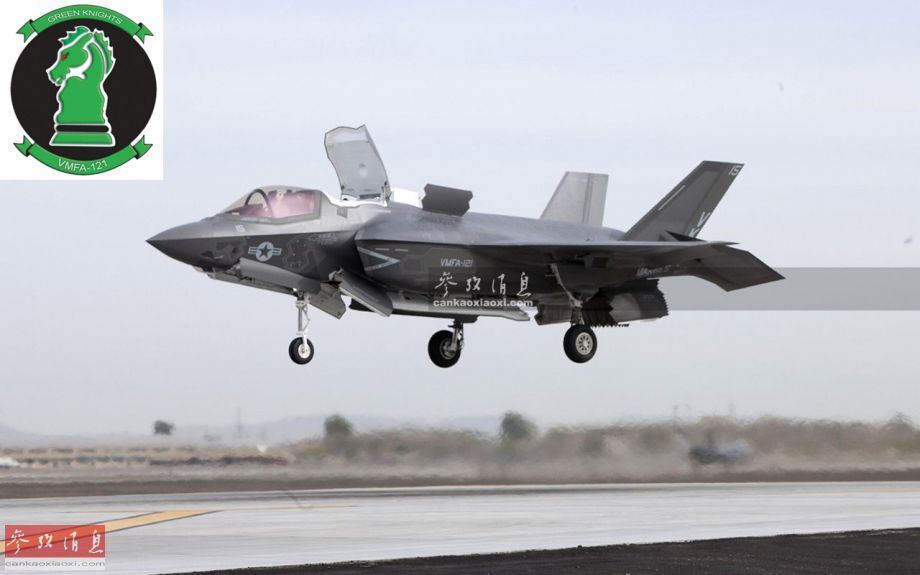 此次部署日本岩国基地的为美海军陆战队第121舰载战斗攻击机中队(VMFA-121),中队绰号“绿骑士”,常驻亚利桑那州尤马基地,是美陆战队中最早接收和进行F-35B训练的部队。图为2013年,隶属于VMFA-121中队的F-35B在尤马基地进行短垂起降训练。
