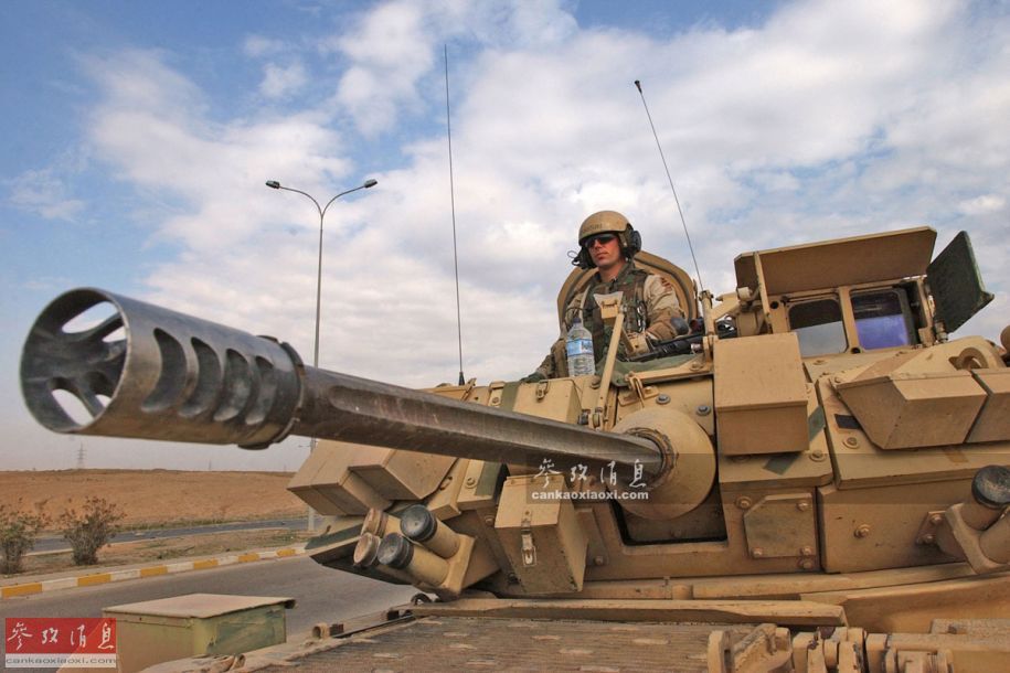 美陆军的M2“布莱德利”步兵战车也使用同款武器,该型机炮最高射速每分500发,最大有效射程大于3000米。图为M2步战车的25毫米主炮特写。