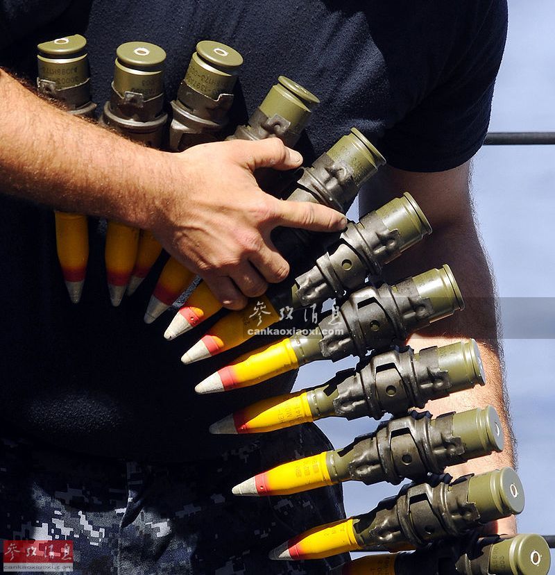 “大毒蛇”链炮配备有包括脱壳穿甲曳光弹(APDS-T)、 高爆燃烧曳光弹(HEI-T)等多种弹药,可有效摧毁敌军轻装甲战车或武直等目标。图为其配备的MK210高爆燃烧曳光弹。