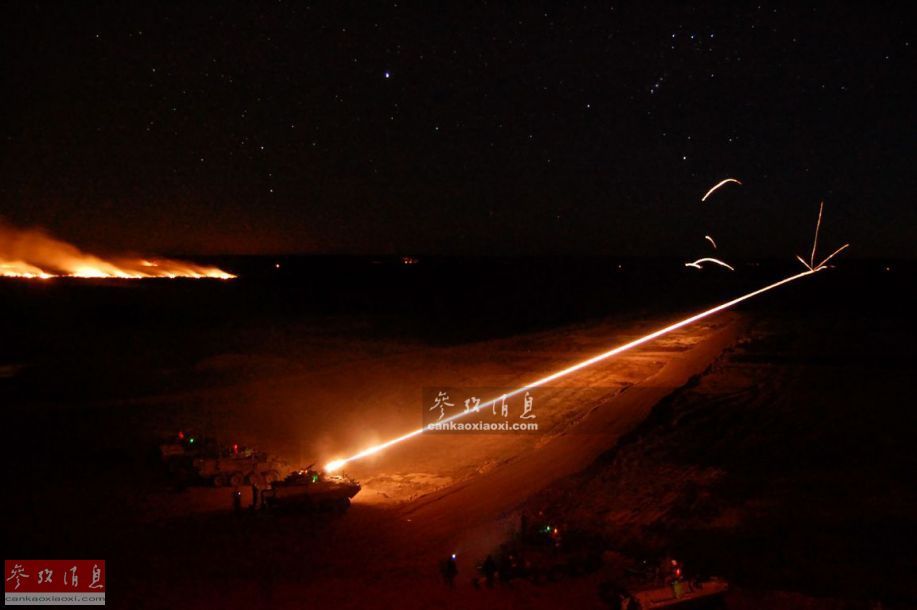 LAV-25装甲车使用M242“大毒蛇”链炮夜间打靶资料图。