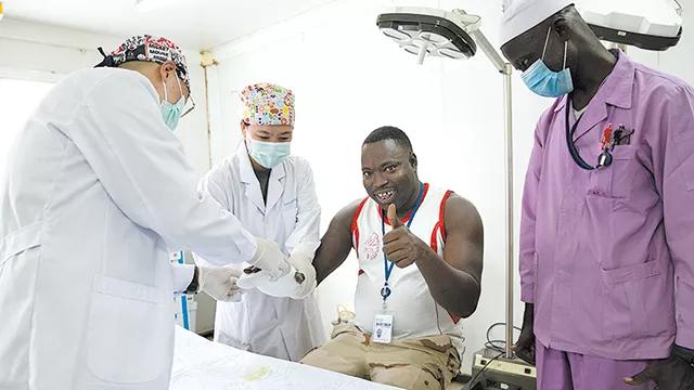 塞内加尔战斗营士兵感谢我马里维和医疗分队军医的救治。