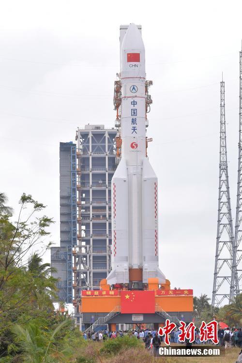 长征五号遥三运载火箭12月21日在中国文昌航天发射场完成技术区相关工作后,垂直转运至发射区,计划于12月底前后择机实施飞行试验任务。长征五号遥三火箭于10月底运抵中国文昌航天发射场后,按照飞行任务测试发射流程,陆续完成了总装、测试等各项准备工作。张高翔 摄