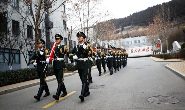 早上8时30分整,伴随着《歌唱祖国》的旋律,18人组成的方队踏着余晖,迎着朝阳,英姿飒爽、步伐矫健,护卫着鲜艳的五星红旗,昂首阔步走向国旗杆下。