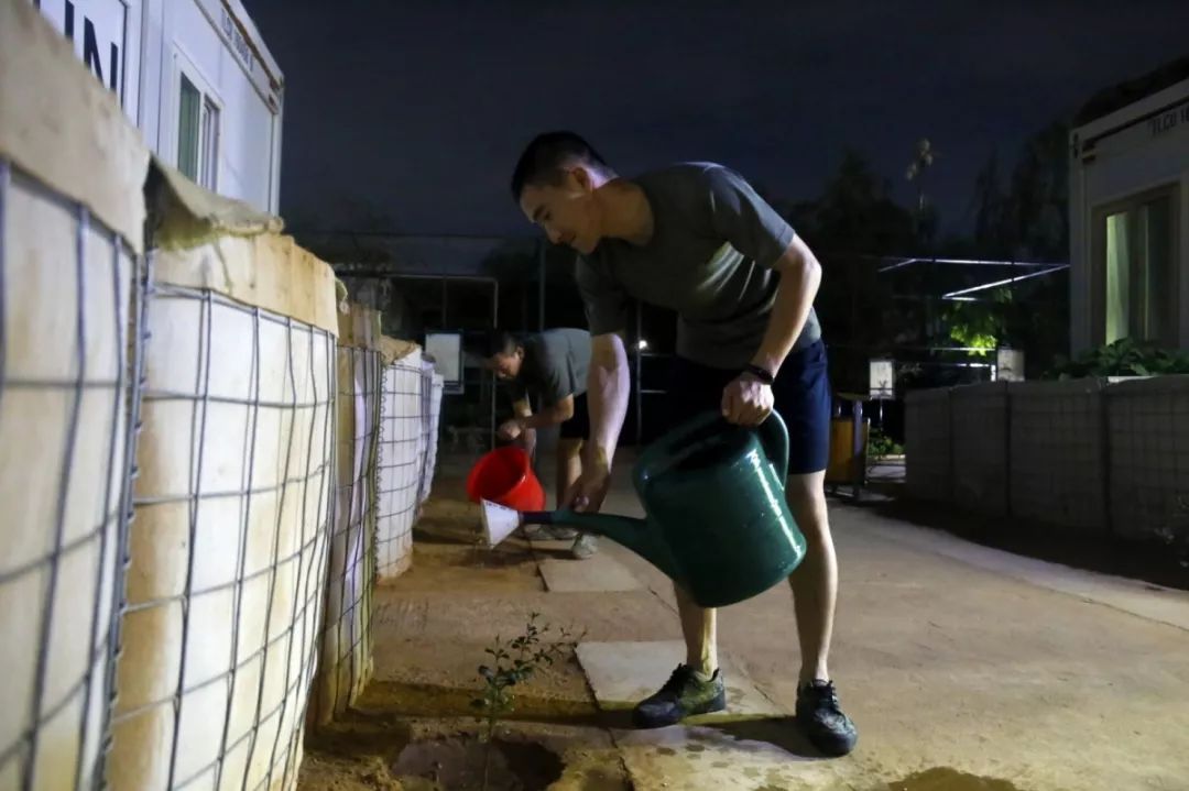守护和平,也珍爱绿色。中国维和部队不仅为和平事业做出努力,还为改善非洲生态环境贡献力量。在营区里有个不成文的约定,大家习惯在睡前用积攒的生活废水浇灌营区里的树木,寄托绿色希望。