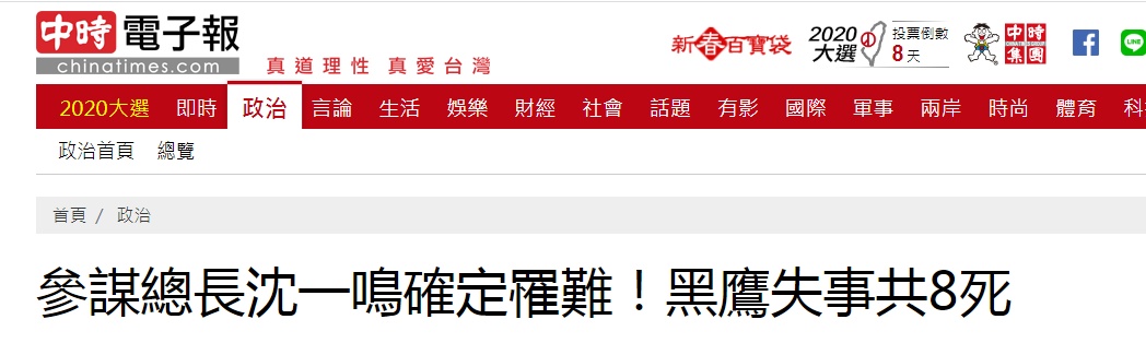 台媒更正:台军“参谋总长”确认在“黑鹰”事故中死亡。