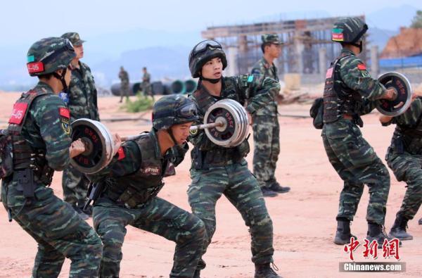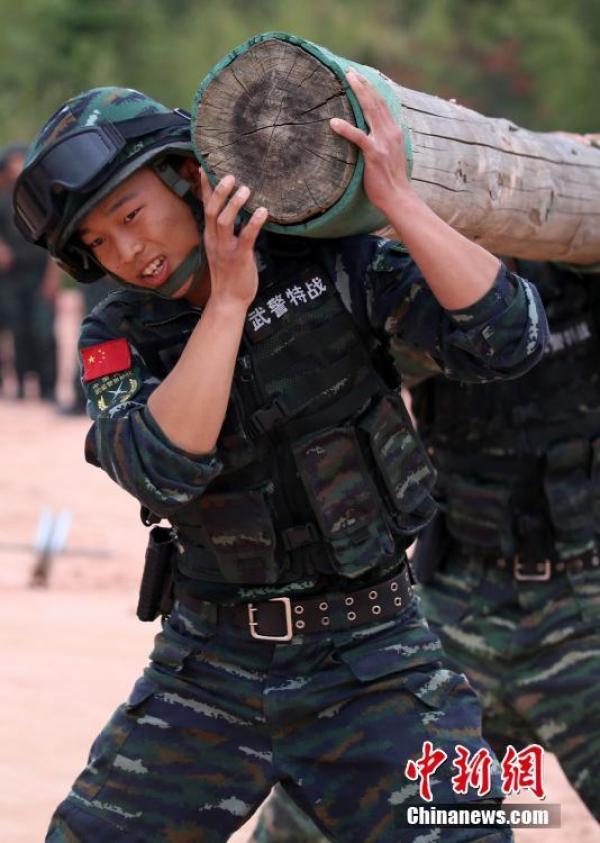 2日以来,武警福建总队在福建全省各片区同步开展“魔鬼周”训练,数百名特战官兵展开为期一周的极限训练,全面锤炼陌生环境和复杂条件下的处突反恐实战能力。图为参训特战官兵扛圆木锤炼团结协作能力。王桂生 摄