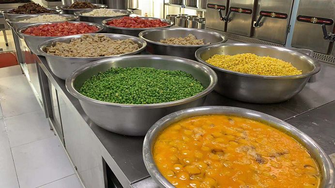 每天下午3点,炊事班会备好晚餐所用的材料。