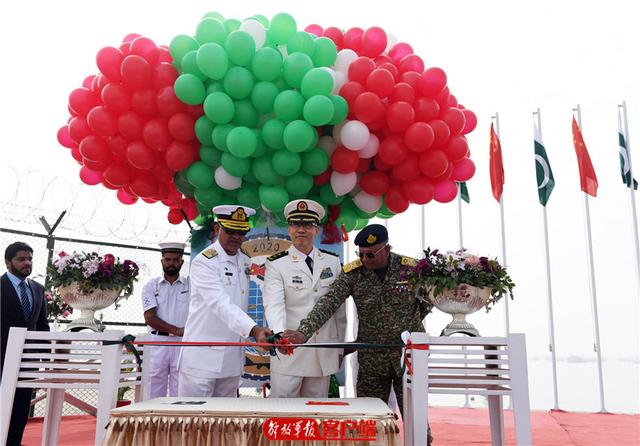当地时间1月6日,“海洋卫士-2020”中巴海上联合演习在卡拉奇举行开幕仪式。图为开幕式上,中巴双方总导演为开幕式剪彩。(穆瑞林 摄)