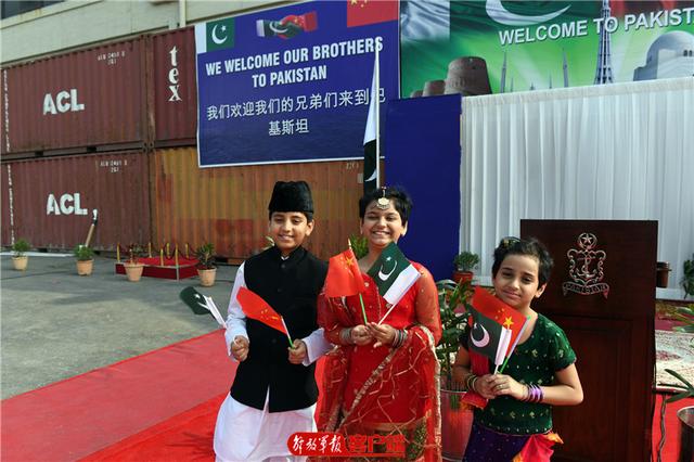 当地时间1月5日,巴基斯坦在卡拉奇为中国军舰到港举行欢迎仪式。图为当地华侨、华人代表在港口热烈迎接。(穆瑞林 摄)