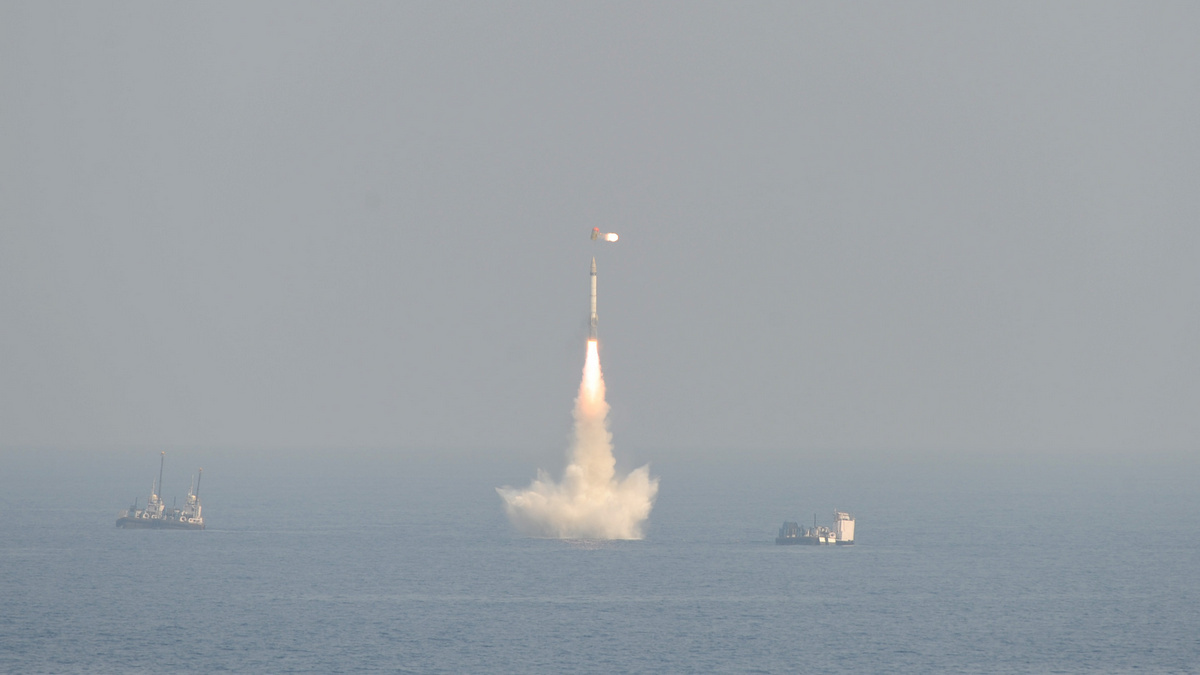 报道称,印度政府消息人士透露,印度19日在安得拉邦沿海的“水下平台”试射一枚具有战略意义的K-4潜射弹道导弹,试验取得圆满成功。该导弹由印度国防研究与发展组织开发,它采用固体燃料,重约17吨,长12米,直径1.3米,可以携带重约2吨的核弹头,最大射程达3500公里,被印度军方看作是未来水下核威慑力量的重要组成部分。