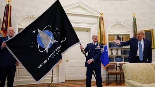美国太空军旗帜亮相仪式5月15日在白宫举行
