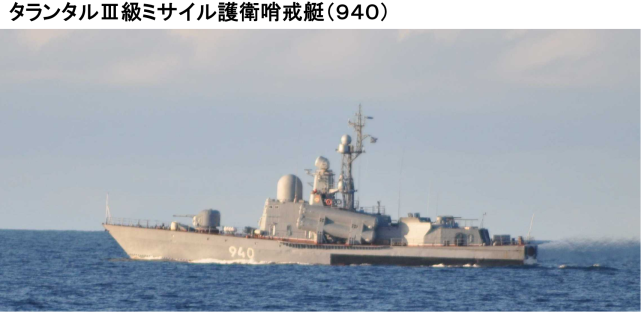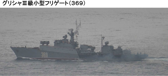 日本统合幕僚监部发布的资料称,14日下午4时许,海上自卫队余市防备队第1导弹艇队所属导弹艇“熊鹰”号和八户基地第2航空群所属P-3C海上训练机在宗谷海峡东北约350千米处海域发现向西南方向航行的两艘俄罗斯海军军舰,经识别分别为1艘“格里沙III”级小型护卫舰和1艘兵器运输舰。随后,经确认,两艘俄罗斯军舰穿越宗谷海峡西进,向日本海航行而去。