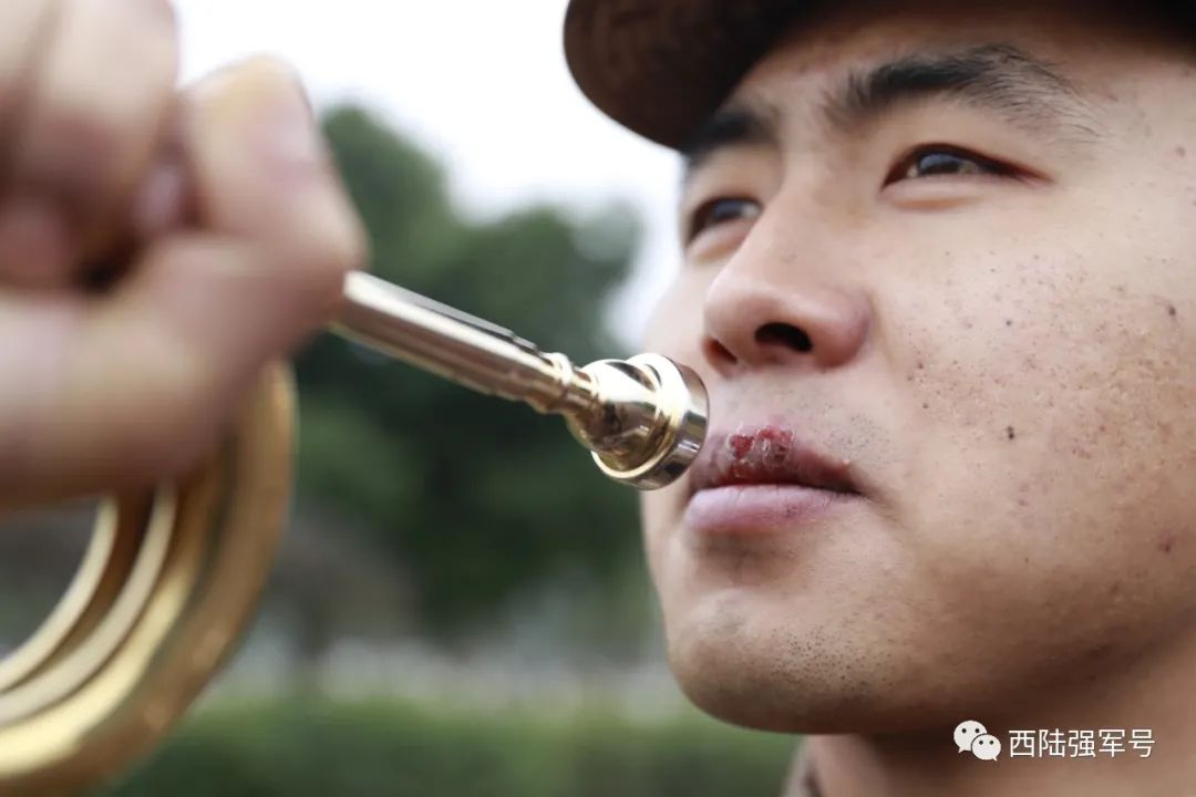 军号不同于其他的乐器,它没有音弦,全靠嘴巴和舌头去控制音调,从基础五线谱,到音阶的练习发音,不少司号员都要经历腮疼嘴肿的“磨难”。