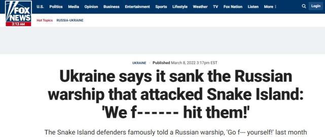 综合美国福克斯新闻网等外媒8日报道,乌克兰军方消息人士表示,当地时间3月7日晚上,一艘俄罗斯军舰在乌军的反攻中被击沉。