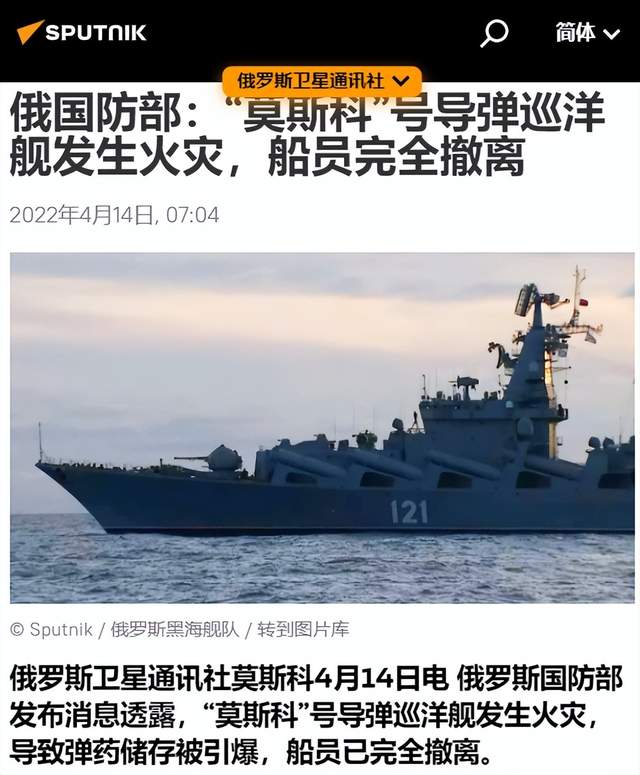 根据俄罗斯《塔斯社》、《卫星通讯社》等相关媒体的报道,俄海军黑海舰队旗舰,排水量达到12000吨的“莫斯科”号导弹巡洋舰在4月13日晚间发生严重的爆炸起火事故。“莫斯科”号导弹巡洋舰一侧的P-1000“火山”重型超音速反舰导弹发生殉爆,考虑到情况已经彻底失控,俄军不得不含泪下令弃舰,抛弃这艘俄海军黑海舰队体型最大、战斗力最强的导弹巡洋舰。这也是俄海军自开战以来遭受的最大损失,非常黑暗的一天。