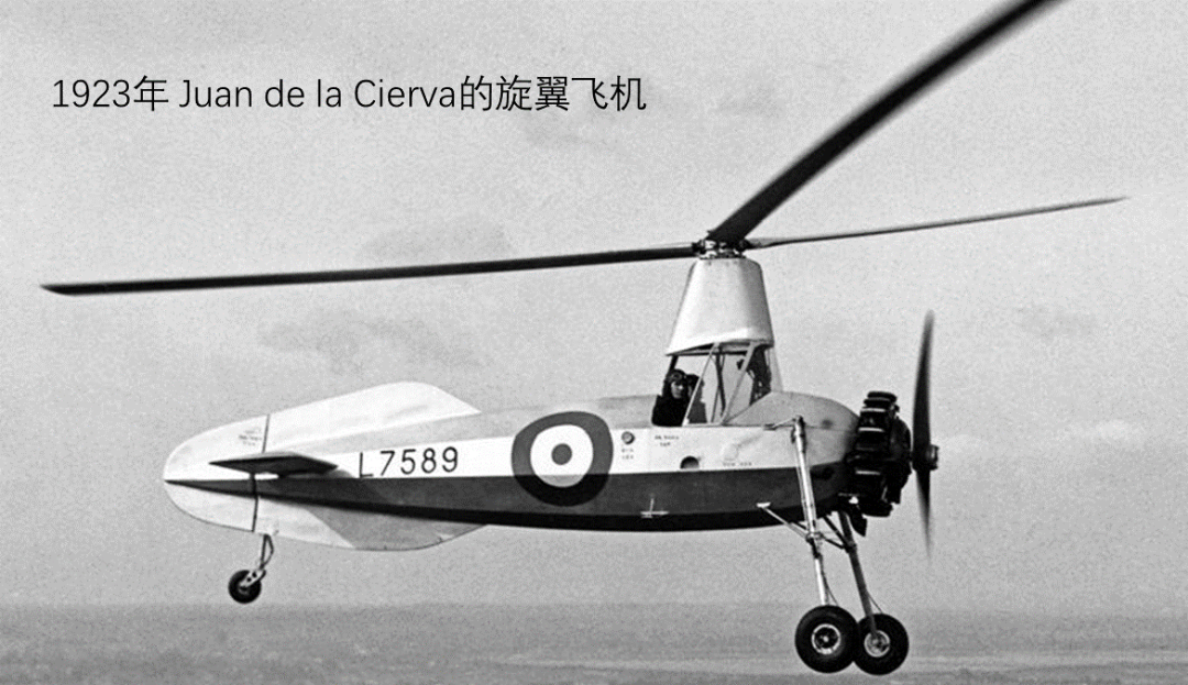 在科尔尼之后,也有许多旋翼飞行的先驱们不断尝试其它构型,其中介于直升机和固定翼飞机的中间产物“旋翼飞机”在二十世纪初占据了主流。它将旋翼和固定翼相结合,利用固定翼提供的升力和稳定性来辅助飞行,比如下图中西班牙工程师胡安·切尔瓦(Juan de la Cierva)所发明的飞机。
