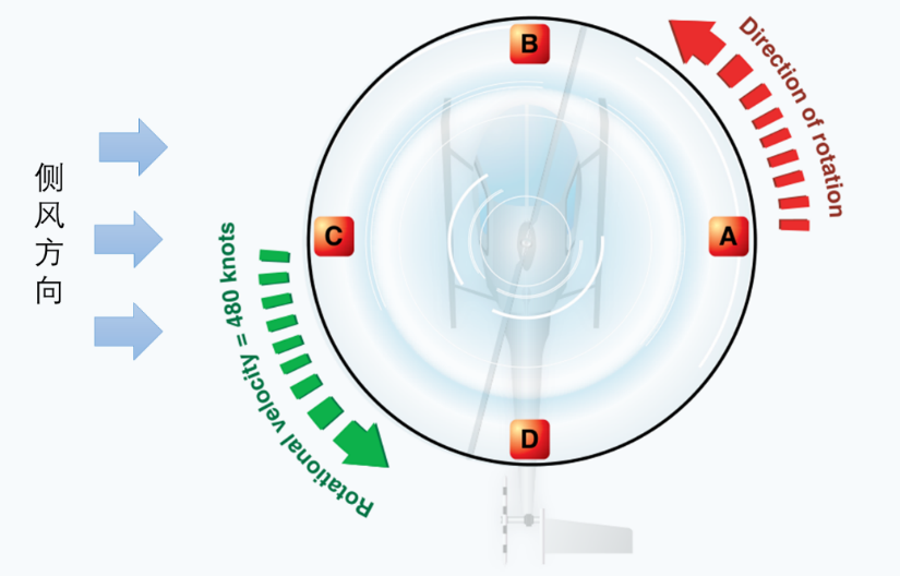 当直升机向前飞行时,前行桨叶与来流相向而行,后行桨叶则顺着来流的方向向后运动,因而旋翼在不同周向位置时,产生的升力不同。如果不对刚性旋翼做出处理,则直升机将发生侧倾甚至倾覆。事实上,人们在早期旋翼机的试制中便遇到了这个问题,而解决的办法便是在旋翼根部增加垂直铰链,或者使用柔性叶片,使得旋翼可以产生自发的上下挥舞,产生变化的气流迎角并使得升力平衡。