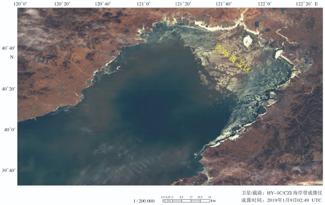 △图注:HY-1C卫星对渤海海冰的持续监测(图示为2019年1月9日)