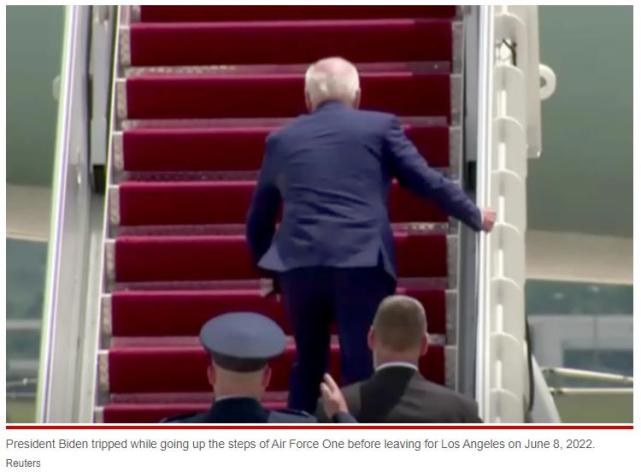 拜登8日登上“空军一号”时险些摔倒 图源:路透社