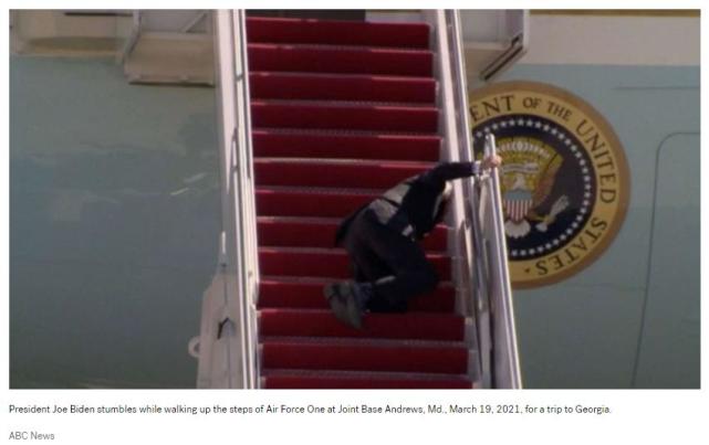 2021年3月,拜登在登上“空军一号”时摔倒 图源:美媒