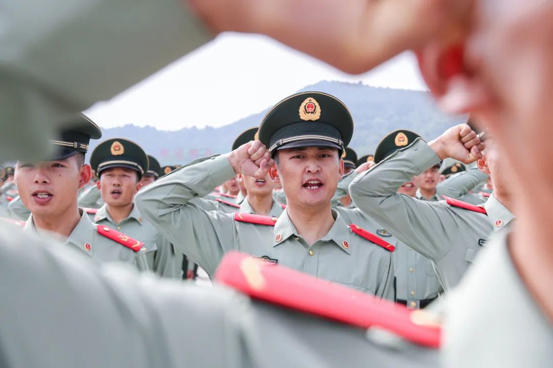 新兵们高举右手、庄严宣誓
