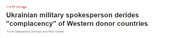 CNN:乌克兰军方发言人嘲讽西方捐助国“自满”
