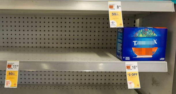 美国超市货架上女性卫生用品供货不足(美国广播公司)