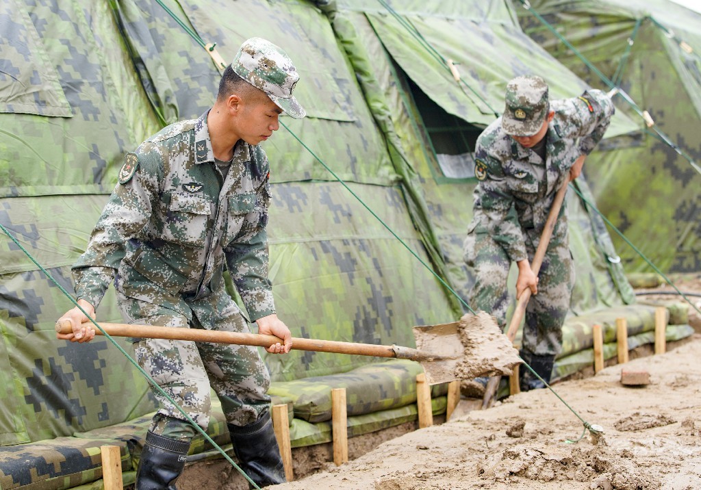 到达指定地域后,面对恶劣的自然环境,该旅立足驻训场实际,制定宿营地开设方案,官兵们一锹一镐开辟道路,一钉一锤搭设帐篷,攻坚克难连续奋战数日。