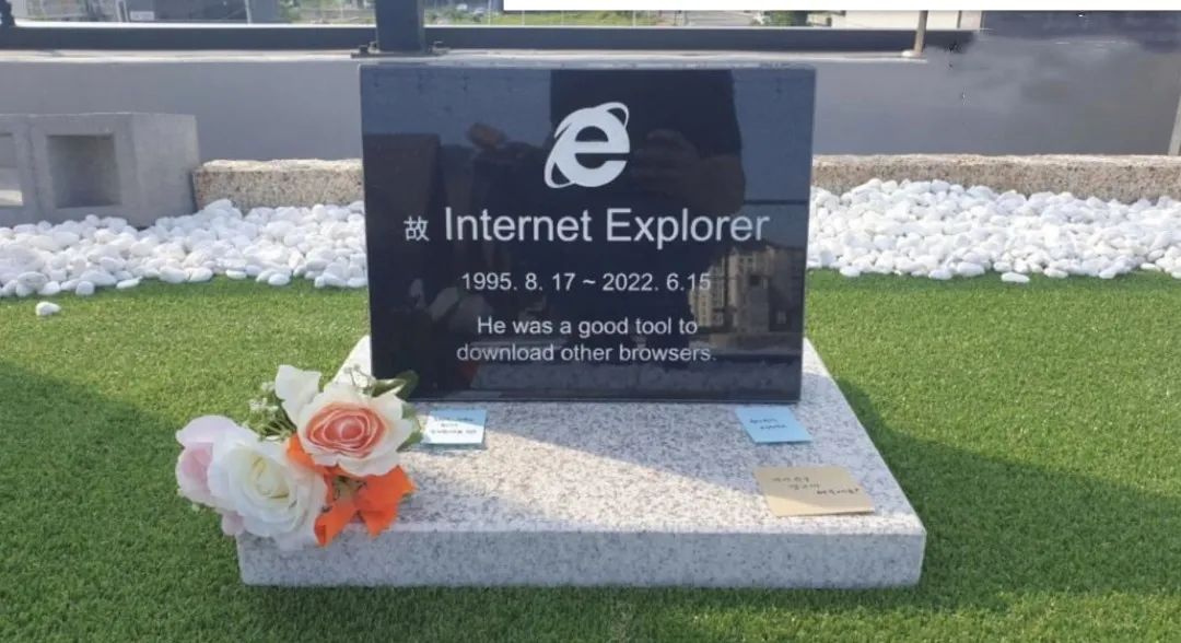 纪念IE浏览器退役,韩国软件工程师咖啡馆上竖起墓碑,照片疯传!