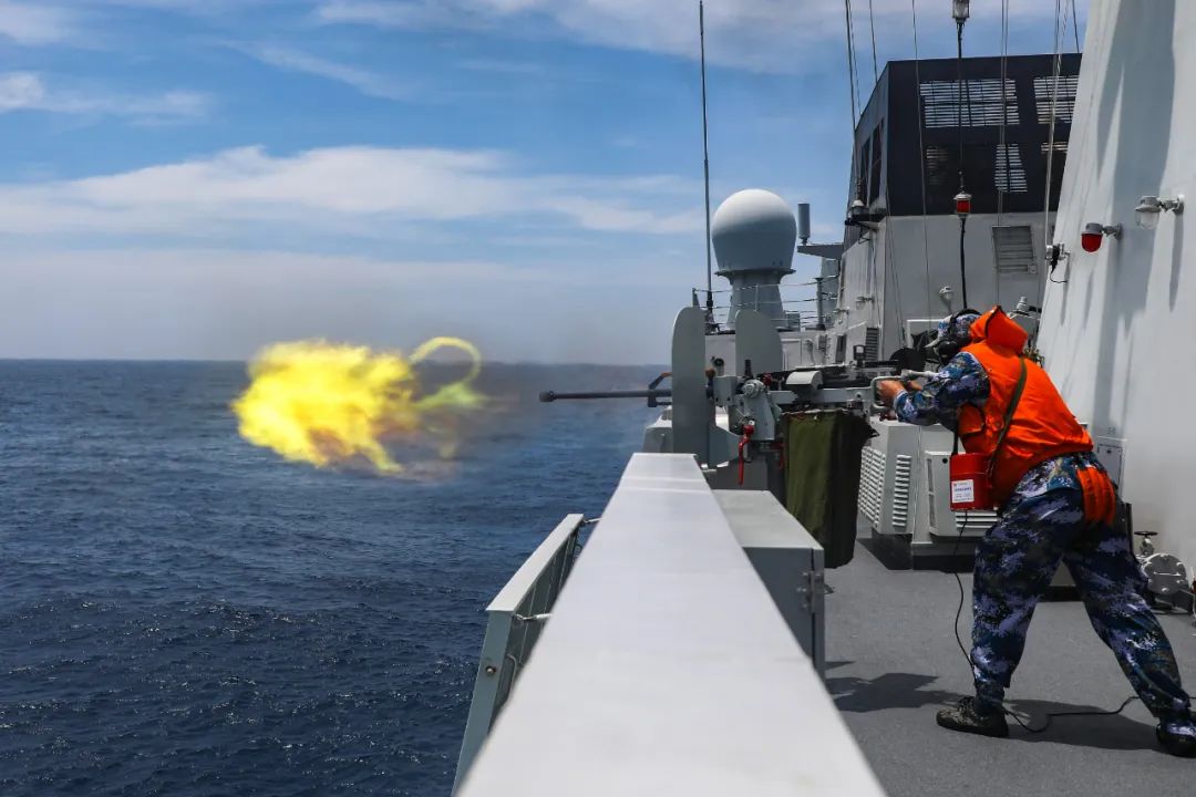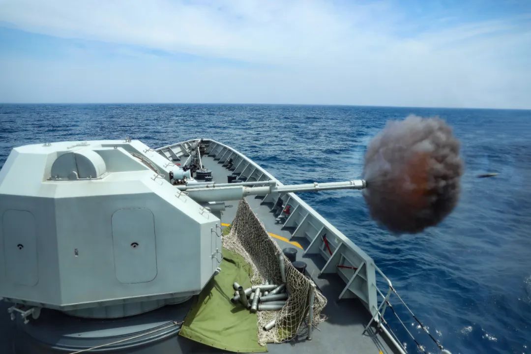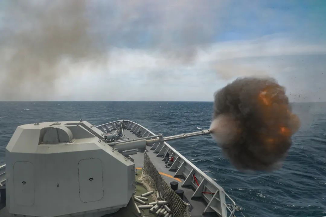 “敌舰一艘,向东北方向逃窜,令你舰立即前出,务必将其击沉。”刚抵达预定海域,铜陵舰便接到“敌”情通报,官兵立即进入战斗状态。舰艇指挥员沉着应对,指挥舰艇向目标海域高速机动,各技术器材加强对海面搜索。锁定目标后,舰艇指挥员果断下达射击命令,舰炮战位立即进行主炮射击,海上目标被精准命中。