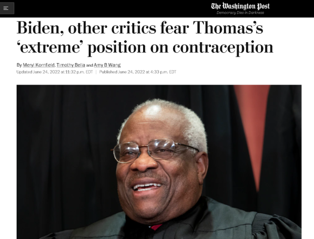 所以,他认为既然美国最高法院“纠正”了1973年的“错误”,那么最高法院也应该重新考虑1965年、2003年和2015年的三项裁决,并称“纠正先前的错误是最高法院的职责”。