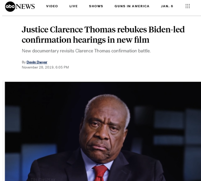 在1991年托马斯刚被老布什政府提名为最高法院的大法官时,他曾一度面临性骚扰女性的指控。而当时在美国国会参议院主持托马斯提名听证会的,正是时任美国特拉华州参议员的拜登。尽管托马斯最终通过了那场听证会,并坚持否认自己性骚扰那名女子,称这是对他的政治迫害,但拜登不仅给托马斯投了反对票,还在会上对他提出了一连串攻击性的问题。