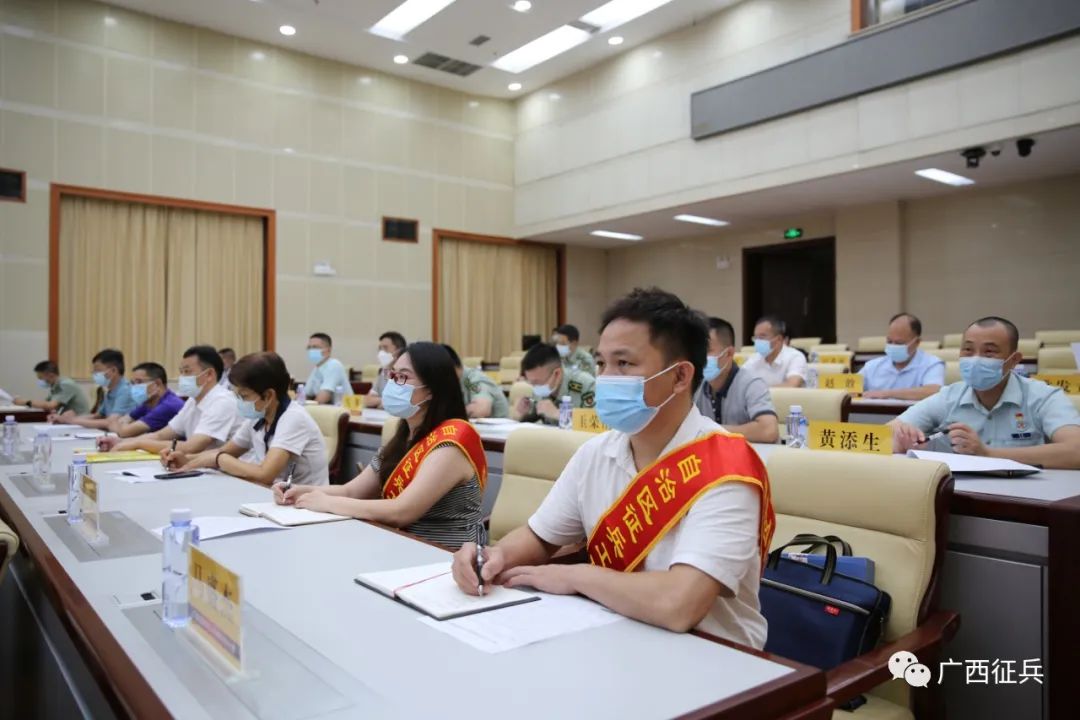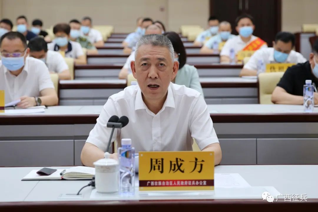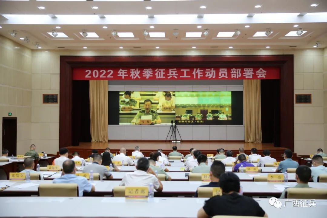 6月28日上午,自治区召开2022年秋季征兵工作动员部署会。会议通报表彰了2021年度自治区征兵工作先进单位和先进个人,全面总结了2022年春季征兵工作情况,部署了秋季征兵任务。自治区征兵工作领导小组副组长、广西军区少将政委马辉,自治区征兵工作领导小组副组长、自治区副主席周成方,自治区征兵工作领导小组副组长、广西军区少将副政委兼纪委书记张柯平,全区各级征兵工作领导小组成员、人民政府征兵办公室成员、各高校征兵工作站负责人、部分基层专武干部以及受表彰的先进个人参加会议。