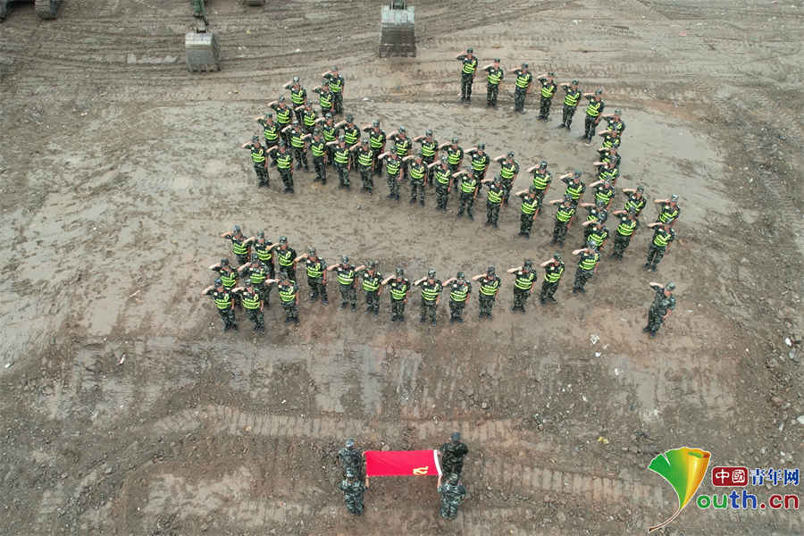 “我志愿加入中国共产党,拥护党的纲领,遵守党的章程……”党旗鲜艳夺目,装备威武列阵,将主战装备摆列“七一”字样。武警第二机动总队某支队正在训练场组织官兵重温入党誓词。