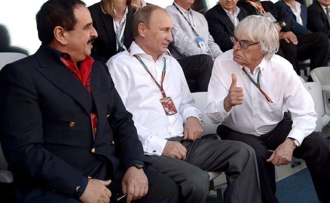 伯尼和普京一同观看F1比赛 图源:克里姆林宫网站