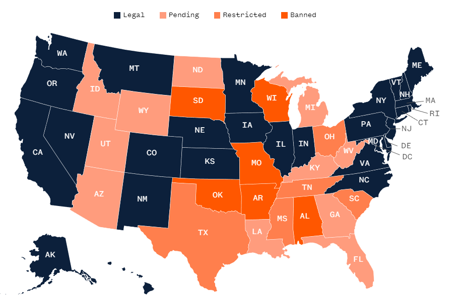 ↑全美已经颁布或即将颁布堕胎限制法案的州