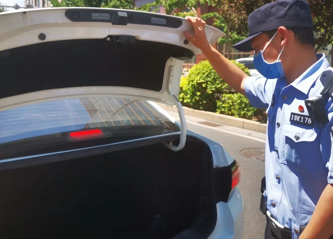 学警王浩强在重点区域南门执勤时,发现一可疑车辆,车中有一对父子正在争执,见此情状,他立即打开了执法记录仪并上前询问情况。此后,王浩强在特保人员的协助下,将这对父子劝至警车开展询问工作,并对可疑车辆进行了检查。