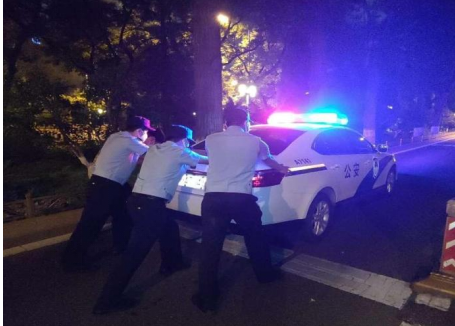 同样的情况也发生在5月20日凌晨,正在值班的学警韩东轩发现岗位上警车的警灯突然熄灭,向指挥部报备检查之后发现车辆断电,需要送去维修。见此情况,他立即与在旁备勤的学警白海庆一同将警车推到了指挥部。事后,他们的行为受到当班领导的称赞,当班领导号召大家学习他们的顽强作风与责任担当。