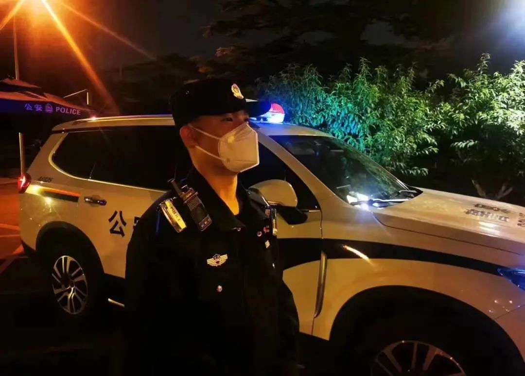 学警在夜晚执勤