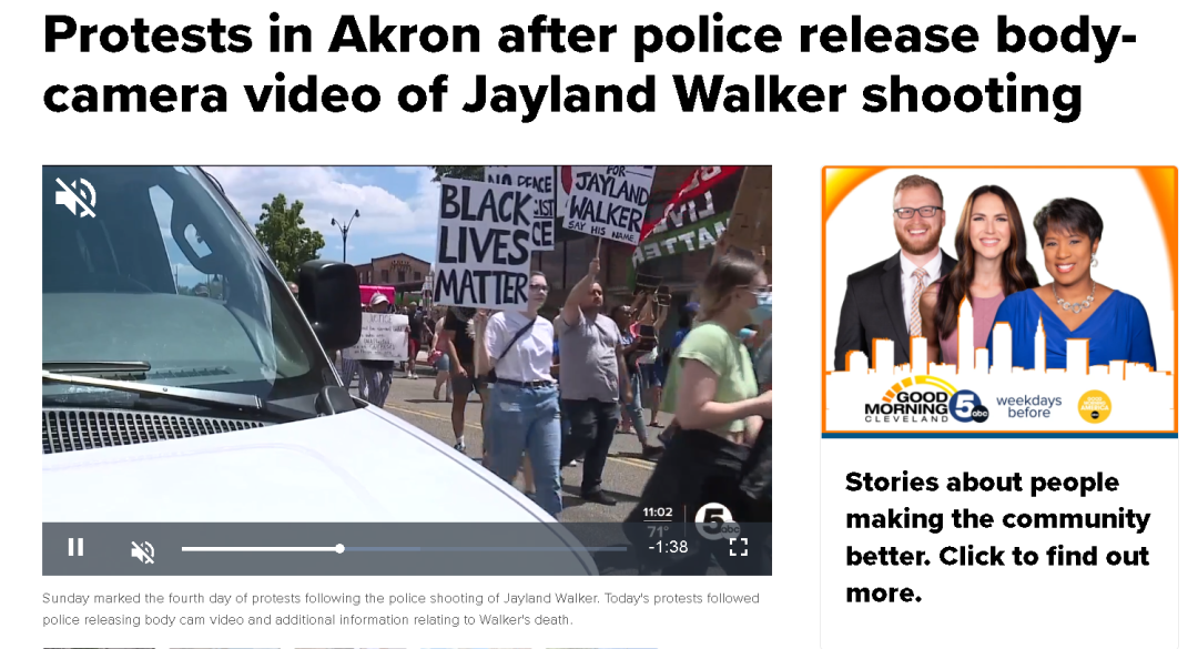 根据俄亥俄州当地媒体的报道,不少抗议者就在案发后走上街头,抗议警方枪杀沃克的做法,并打出了诸如“黑人的命也是命”等反种族主义和警察暴力的标语。
