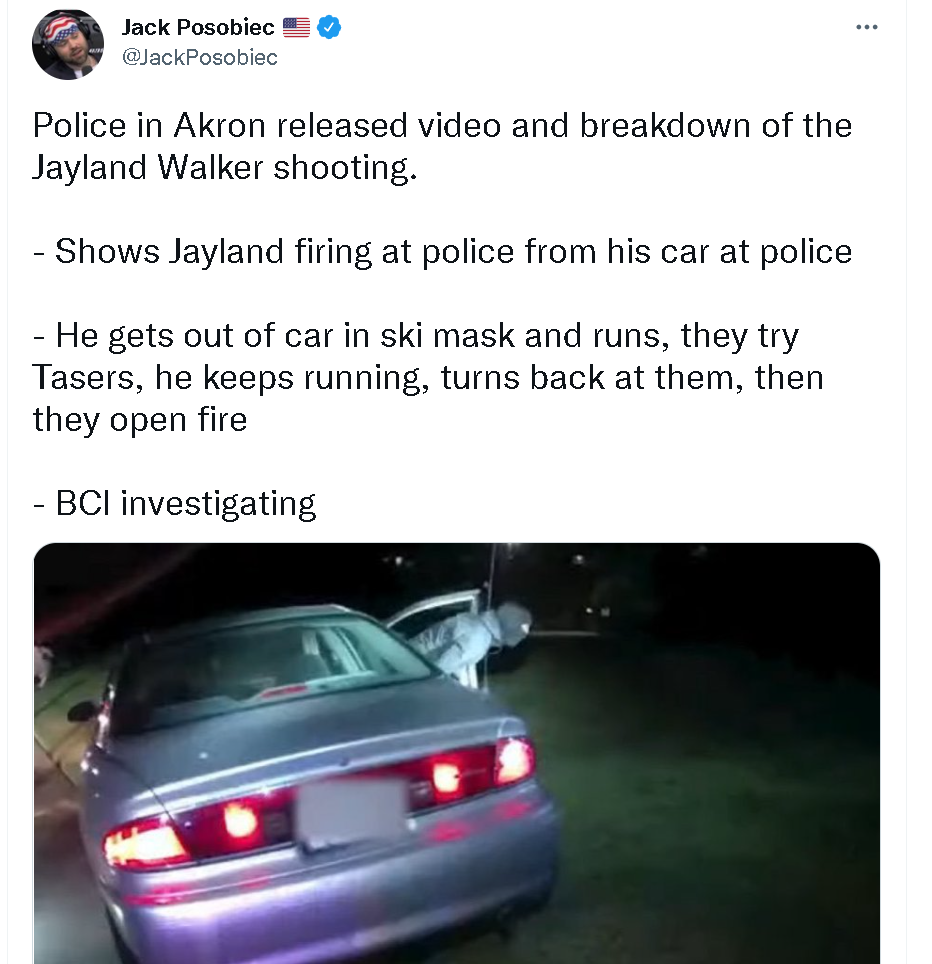 但警方于当地时间周日公布的执法记录仪视频显示,沃克不仅开车躲避警方追捕,还一度在驾车时疑似向警方车辆开枪。而后,在他弃车逃跑时,警方起初曾尝试用泰瑟枪制服他,但因为他持续逃跑未果,这才转而开枪,还是在他突然回头准备面对警方时。所以,也有不少人支持警方枪杀他的做法,甚至认为开那么多枪是确保他无法再反抗。