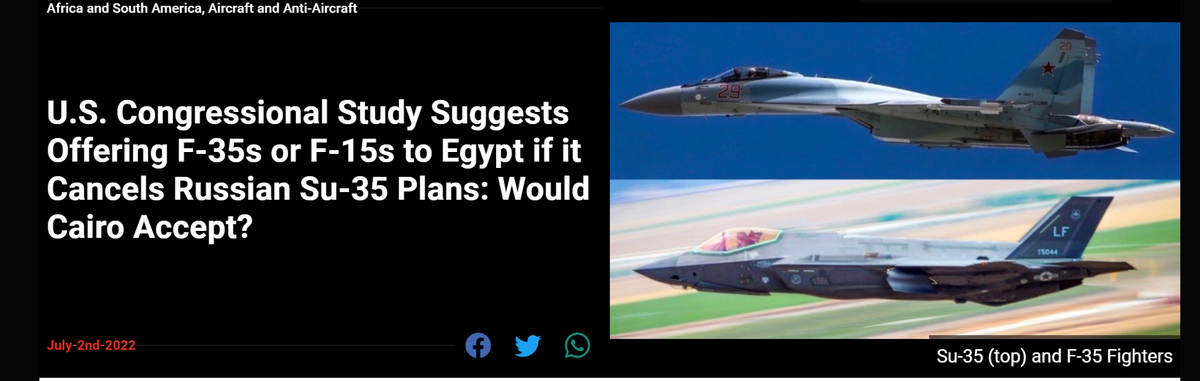 前段时间美国声称可以向埃及出口F15EX,而以色列也在不久之后表示支持美国的做法。其中的原因就是美国向以色列出口的F15以及F16和向其他国家出口的同类型飞机是不太一样的,尤其是埃及。而且最近美国又有变数,美国国会研究建议认为,如果埃及可以取消和俄罗斯签署的引进苏35战斗机的合同,那么美国原则上可以向埃及出口更为先进的F35战斗机。这样问题就来了,面对先进的F35,埃及最终是否会接受这个提议呢?