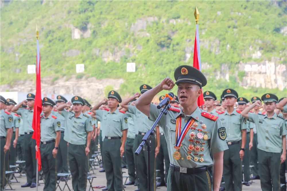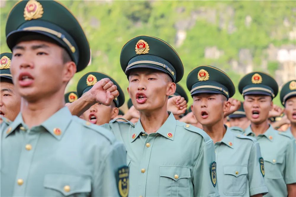 一纸命令,他们从一名地方青年磨练成一名合格的武警战士。“我是中国人民解放军军人,我宣誓:服从中国共产党的领导,全心全意为人民服务……”全体新战友在武警部队旗下,坚定而庄严地宣誓,铮铮铁骨的誓言响彻整个会场,久久环绕营区上空。挺拔的军姿,嘹亮的口号,坚毅的眼神,彰显着他们作为一名军人的荣誉和自豪。戴上肩章的那一刻,见证了新战友的成长和进步,承载着光荣和梦想,意味着把使命与担当扛在了肩上,他们将开启了军旅人生的新征程!