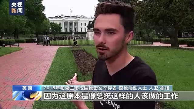 2018年帕克兰市校园枪击案幸存者 控枪活动人士 大卫·霍格:我们不想在这里(呼吁控枪),因为这原本是像总统这样的人该做的工作,但我不得不这么做,因为我们的政府无所作为。