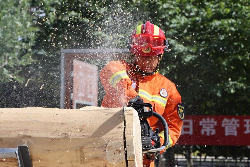 天气炎热,但没有阻挡消防队员训练的激情,训练项目包括了100米消防员障碍、攀登挂钩梯、极限穿越、无齿锯维修操作、无人机航拍侦察等。队员们全员参训、科学施训,从加强队员体能训练和实战操法相结合,充分发扬消防救援队伍“不怕苦、不怕累”的优良传统。